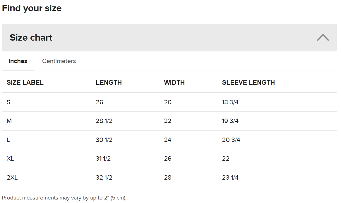 Place the end of the tape beside the collar at the top of the tee (Highest Point Shoulder). Pull the tape measure to the bottom of the shirt.