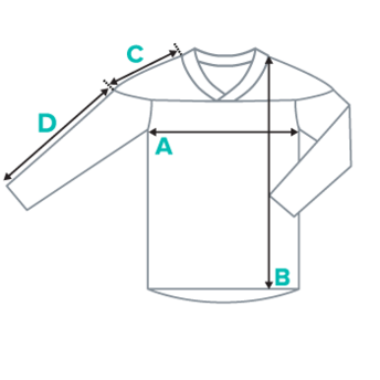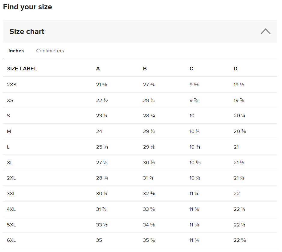 Place the end of the tape beside the collar at the top of the tee (Highest Point Shoulder). Pull the tape measure to the bottom of the shirt.